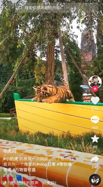 作为专业饲养员,80后沈阳姑娘黄宝莹在过去3年多的时间里,她先后照顾了几十只东北虎,是不少幼虎出生后的首任“奶妈”。她的抖音里,既有东北虎幼崽第一次跳跃的可爱瞬间,也有饲养员人工刺激幼虎排便的硬核知识。超过1700万网友点赞了这份特别的“育儿日记”。