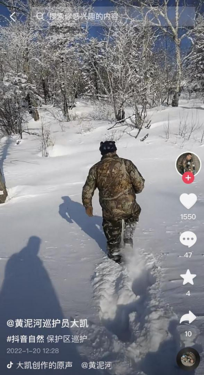 黄宝莹之外,在野外清理猎套、为东北虎“保驾护航”的巡护员,用漫画、视频等形式介绍东北虎知识的科普创作者……这些专业人士的不断努力下,东北虎开始越来越多地受到关注。仅在抖音上,东北虎相关话题播放量就超过23亿,最新上线的东北虎保护地,更是10天就吸引了近两千万网友参与守护。
