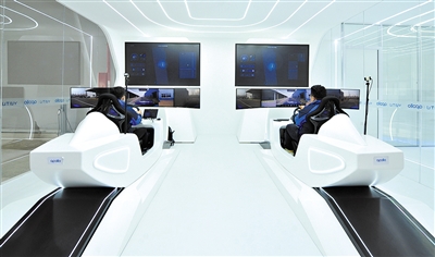 ▲在沧州经济开发区兴业公园自动驾驶体验站,市民体验乘坐“自动驾驶出租车”。