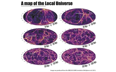 研究人员使用先进的生成算法,模拟再现特定的宇宙团块,从而能使模拟包含天文学家几十年来观察到的银河系附近的结构。这意味着局部宇宙中为人熟悉的结构,如处女座、彗星和英仙座星系团,甚至是本地空洞,都会在模拟中重现。模拟的中心是一对星系——银河系和其附近的大质量“邻居”仙女座星系的虚拟对应物。