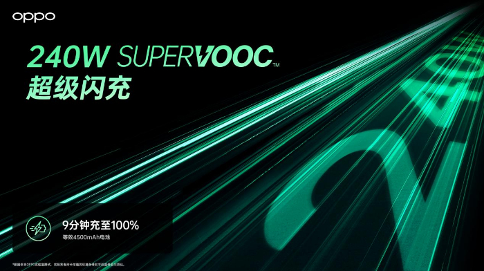 面对5G万物互融时代用户对充电效率的不断升级的要求,OPPO在领先的闪充架构基础上进行了极限探索,推出240W超级闪充,充电效率再创新高:最高可支持24V/10A充电,9分钟左右即可将等效4500mAh电池能量的手机最高充至100%。