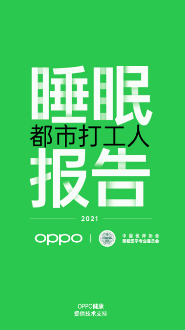 3月21日是第22个世界睡眠日,中国医师协会睡眠医学专业委员会、OPPO健康发布了《2021都市打工人睡眠报告》(以下简称“报告”),基于有效问卷调研数据和OPPO大数据分析,多维度揭示了上班族群体的睡眠健康状况,并给出改善睡眠的科学建议。