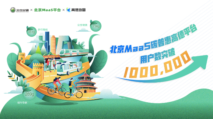 2022年3月23日,在高德地图APP上参与北京MaaS碳普惠活动的用户数超过100万,显示了2020年9月至今,市民绿色出行意愿显著提升。