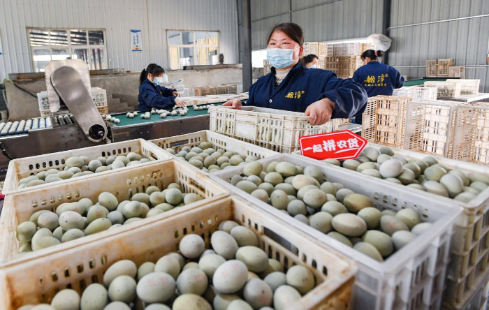 广水市农业农村局副局长魏平才介绍,在松淳蛋业这样的龙头企业带领下,广水皮蛋年产值近3亿元,带动当地经济发展的同时,产品借电商平台远销全国,“皮蛋也成为我们广水的一张名片!”