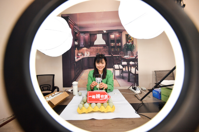 主播在电商平台直播销售皮蛋。 摄影 王永胜