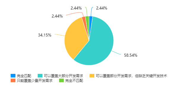 当前高校教育和企业需求的不适配性集中体现在课程上。首先是课程内容的滞后性。如图3所示,调查结果中,34.1%的企业认为高校学习的课程与其开发需求不完全匹配,尽管高校的主干课程可以覆盖大部分开发需求,但是缺乏企业最关注的实践开发技术。高校课程更新和改革,总是落后于企业开发实践。