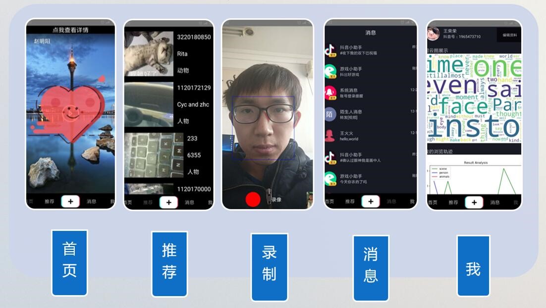 从企业角度看,企业通过直接参与高校一线教学,解决了企业难以参与学校课程设置的问题,行业人才需求导向得到部分实现,解决了高校教育与企业实际需求脱钩的问题。同时,在授课过程中,企业以其自身业务为基础开展培训,帮助企业真切了解学生实际能力,提前选拔高质量人才进入企业,省去复杂的招聘环节。尤其对于“top”人才,企业可以早于招聘季提前“掐尖”,满足了企业对于拔尖人才的需求,提升了企业的用人满意度。如图9所示,在字节跳动的手机应用开发课程中,学生们完成了“抖音”产品原型设计,以视频形式分享生活、传播新闻、拓展社交,参与该课程的大量学生毕业后进入字节跳动工作。根据统计,近三年来,字节跳动从计算机学院招聘优秀毕业生15人。这部分毕业生都是学生中最适配企业需求的一部分,他们很快成为了企业核心科技攻关的中坚力量。在学校和企业的沟通反馈中,企业对合作成效十分满意。