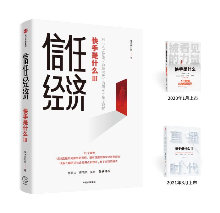 据介绍,《信任经济》是快手研究院对新时代新消费场景的进一步深入挖掘,该书结构分为三个部分,包括知识经济、信任革命、三农与共同富裕,深度呈现了信任经济下,数字消费的各种场景、变化和新的形态。本书不光是时代的记录,更是对时代的深度思考。