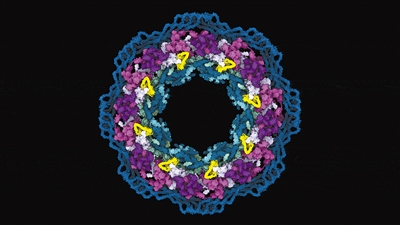 人体核孔复合体的俯视图,这是人体细胞中最大的分子机器。