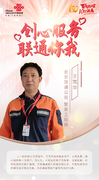 工作中,他立足岗位,兢兢业业,积极投身政务大客户的通信保障工作,深度参与技术难点的攻克,把“北京联通为客户”的理念贯彻到日常工作中,真正做到始于需求、终于满意。