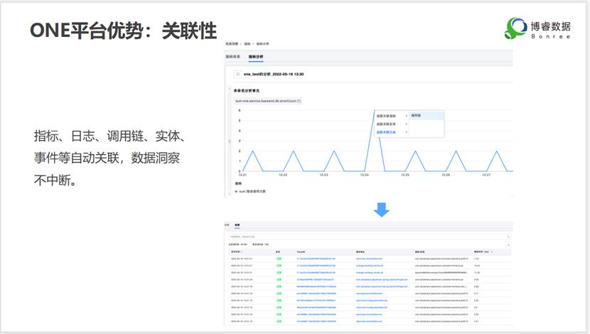 在具体的业务实践方面,博睿数据资深售前总监常旭介绍,ONE 平台将打通业务和运维,明确业务指标、转化率、客户留存率、客户流失率等,高效可视化故障域,降低业务客户流失率;同时,在新老平台的统一维护层面,可从0-1构建一体化智能可观测平台,降低业务、运维、研发的沟通成本,提升工作效率,进而提升用户活跃度和平均使用时长,助力企业提高数字化体验,赋能企业数字化转型。