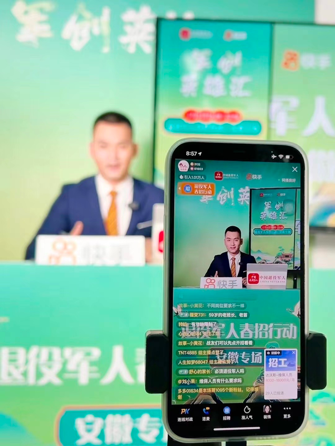 自2022年至今,退役军人事务部宣传中心在快手平台推出“军创英雄汇”退役军人春招行动专场,通过“直播带岗”推荐优秀的军创企业,已成功举办浙江、河南、广东、安徽、海南5场直播,吸引1300万人次关注;山东省济南市人社部门在快手上推出“云探厂直播”,赢得用工企业和广大求职者的好评;山东省潍坊市高新区公共就业和人才服务中心推出“高薪云聘-2022年春风行动”线上招聘会,近百家来自潍坊的大型用人单位通过快手直播进行招聘宣讲;江苏省常州市金坛区朱林镇联合快手举办朱林镇企业专场直播招聘会,提供近30家企业、800多个岗位。