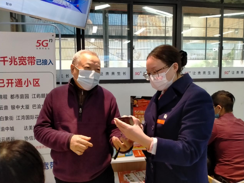 疫情下,人们的生活都发生了改变,公共区域往往需要出示健康码才能入内。但这个行为,对于老年人来说,却成了一件“难事”。这天,小陈正在营业厅值班,一位老人找到他说自己的手机号码已经实名认证,但是健康码就是打不开,提示是未实名。小陈接过老人的手机帮她查看,发现是因为微信没有实名导致的,他随即耐心帮忙将微信进行了实名认证,直到帮这位老人成功登陆渝康码系统,然后又对提出的手机方面的问题一一进行了解答。阿姨对小陈的服务非常满意。