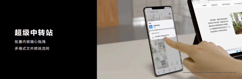 为了各设备间的文件流转能更加简单,华为MateBook E Go采用了“超级中转站”来实现,尤其是多段落不同篇章的摘取,不同应用的分享,通过将文字、图片拖拽到自己的“超级中转站”内,这些内容会形成一张张“卡片”,放置在了“超级中转站”这个临时仓库。用户只需选中所需要的内容,通过“流转”,就能一次性到达目标设备的“超级中转站”内,此时便可以将这些“卡片”拖拽出来,进行再次编辑使用。 这大大提高了户外办公的效率。