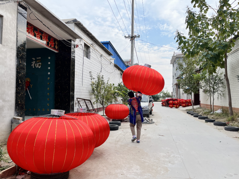 在屯头村,大红宫灯随处可见,全村9成村民从事宫灯相关产业