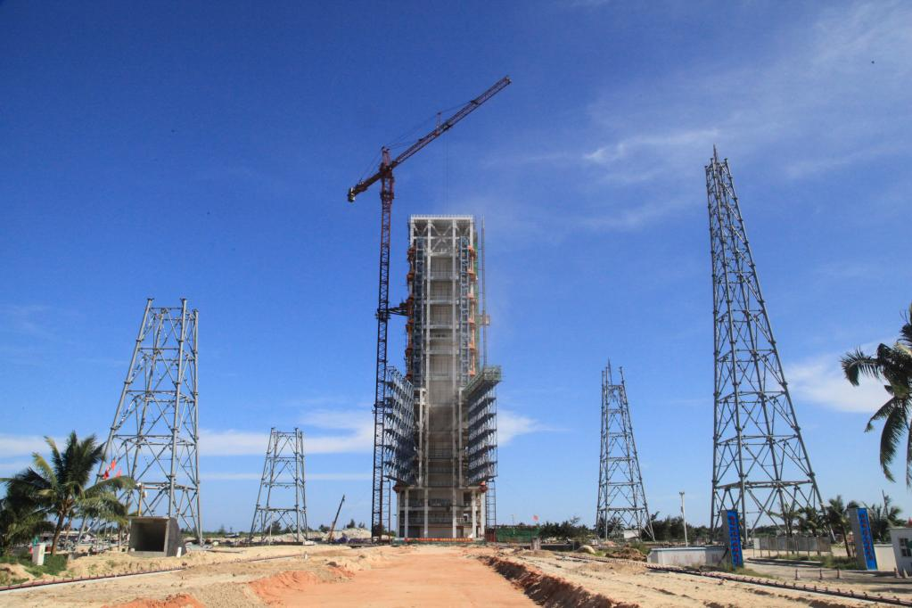 建设中的文昌航天发射场1号发射塔架(2013年5月30日摄)。