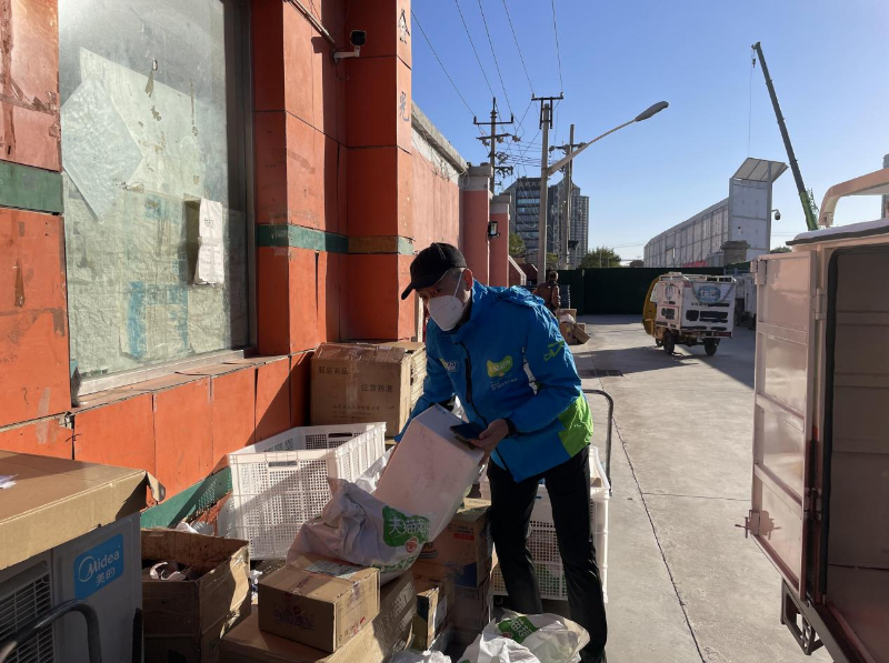北京市消费者协会秘书长杨晓军体验末端配送“最后一公里”。