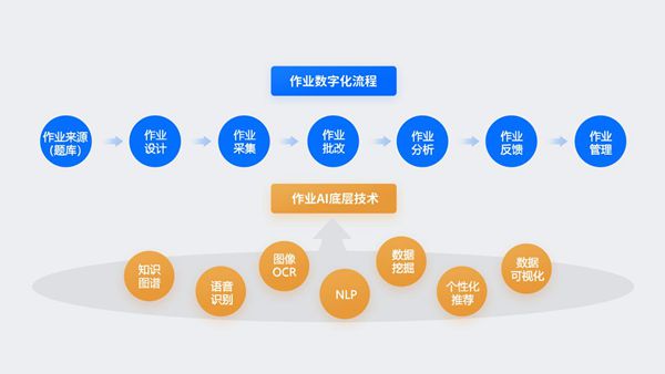 为推进作业来源、设计、布置、完成、批改、分析、反馈、辅导、管理等全流程数字化智能化,作业AI背后依托了OCR文本识别、AI批改、数据分析、知识图谱、算法推荐等AI技术体系,他说。