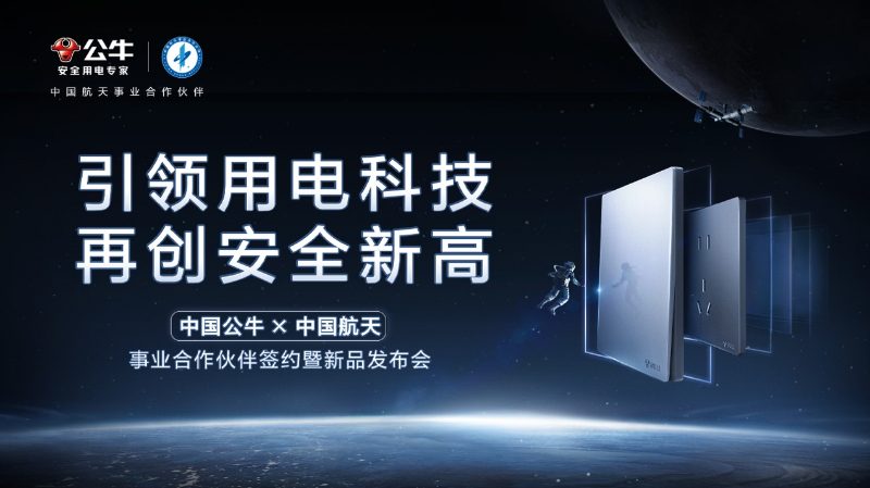12月12日,公牛与中国航天事业合作伙伴签约暨新品发布会在线上举行。发布会以“引领用电科技,再创安全新高”为主题,采用AR沉浸式直播方式面向全网直播,共同见证公牛成为民用电工行业首家中国航天事业合作伙伴。