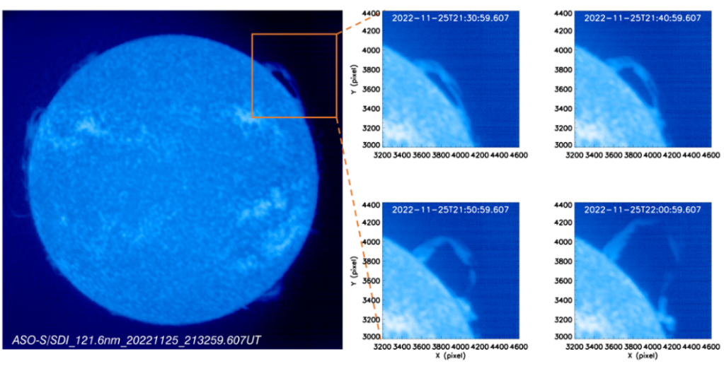 SDI/LST在2022年11月25日观测到的爆发日珥。(中科院紫金山天文台供图)