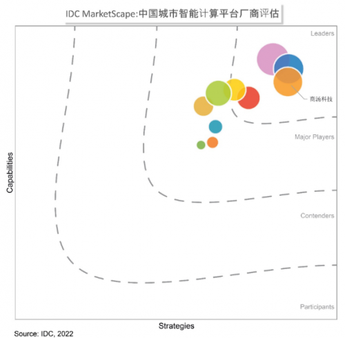 在全面数字化城市管理的大时代背景下,商汤以SenseFoundry商汤城市方舟平台为依托,将领先的人工智能技术、丰富的产品及落地经验结合,持续推动城市的全方位智能化发展。目前,已累计有155个城市部署了商汤城市方舟平台,包括16个超千万人口的大型城市,以及4个海外城市。在IDC发布的《IDC MarketScape: 中国城市智能计算平台厂商评估,2022》报告中,商汤科技成功入围领导者象限,并在战略能力厂商排名中保持第一。