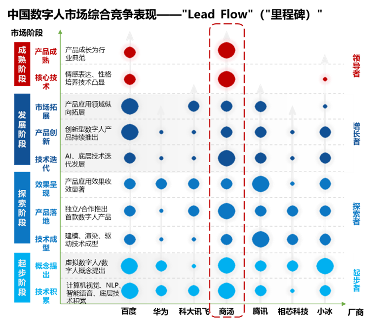 数字人是元宇宙的重要构成。作为AI数字人技术的领导者,商汤以原创的多模态交互、深度学习和全栈式的AIGC技术,能够高效生成“有颜、有智”的AI数字人,快速赋能各个垂直行业。根据沙利文发布的《2022年中国数字人市场观测报告-里程碑》,商汤的数字人产品已进入“成熟阶段”,成为市场领导者,并在十个评估指标中获得六项最高分,整体竞争力排名第一。