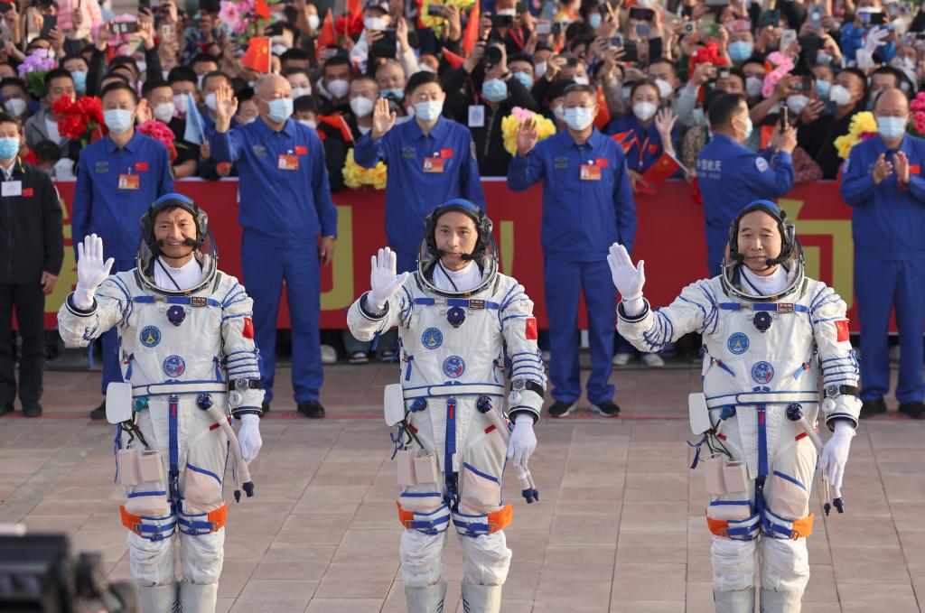 5月30日6时42分,神舟十六号载人飞行任务航天员乘组出征仪式举行 (新华社记者金立旺摄)