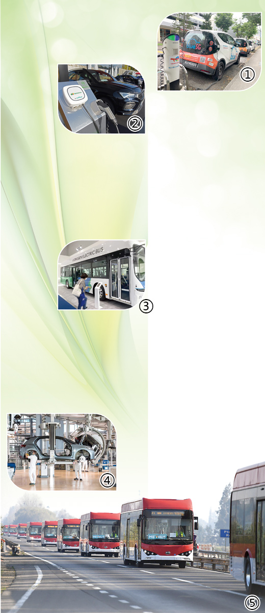 图⑤:智利首都圣地亚哥街头的中国比亚迪纯电动大巴。比亚迪股份有限公司供图