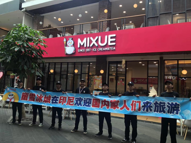 在出境游热门目的地印尼巴厘岛,游客们一下飞机就会看到机场VIP休息室旁边的蜜雪冰城门店。网友“普嘎嘎”在小红书上写道:“喝一口奶茶秒回国,巴厘岛的几个主城区都有蜜雪冰城,路过每一家都是排着长队,味道和国内喝到的一模一样。”