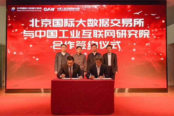 2月25日,北京国际大数据交易所和中国工业互联网研究院合作签约仪式在北京举行。中国工业互联网研究院党委副书记李炜与北京金融控股集团有限公司副总经理李岷签订合作协议,北京国际大数据交易平台—工业数据专区正式上线。