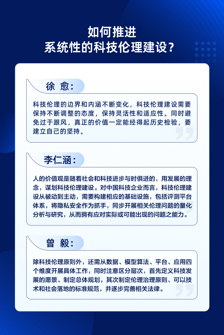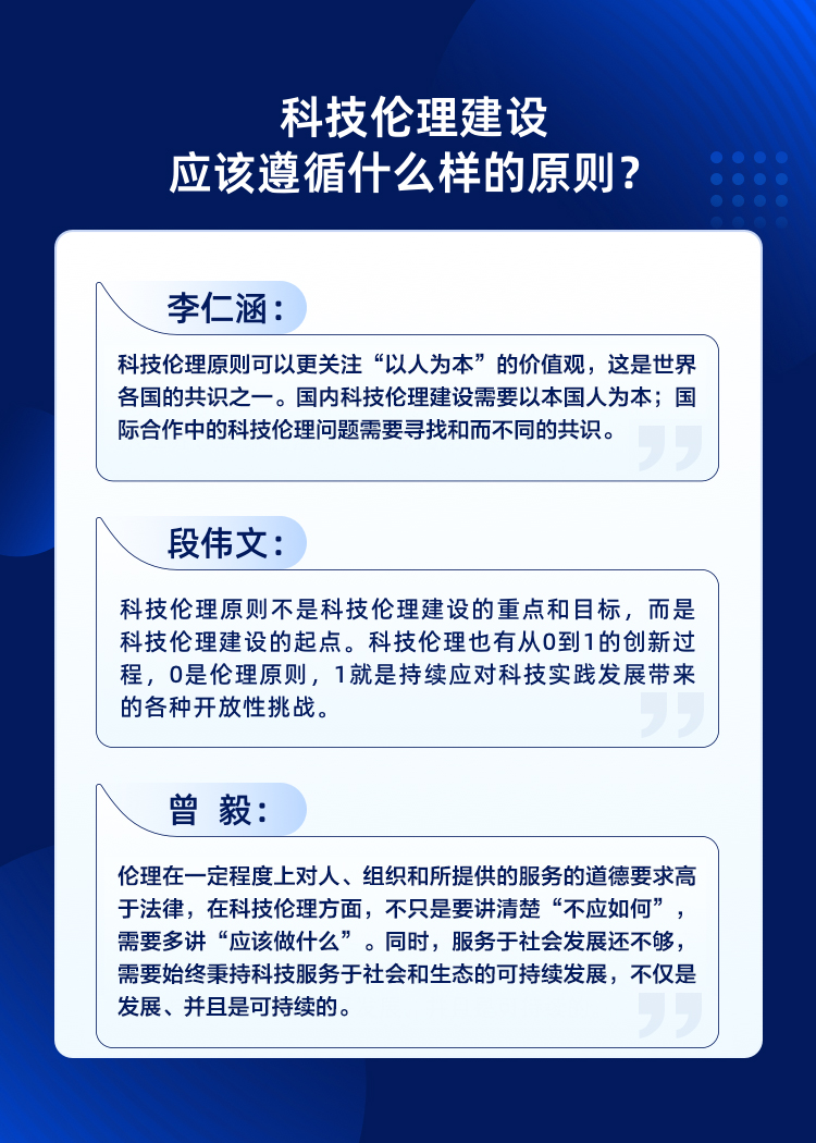 信息化百人会执委徐愈建议,科技伦理的复杂性,决定了要以长期主义对待科技伦理问题,政府避免运动式的方式治理,企业避免应付的心态,社会组织避免走极端。多位专家认为,科技伦理建设的“牛鼻子”是将以人为本的价值观内化到科技伦理原则中,尤其是关照技术发展中的相对弱势群体。