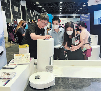 参观者在新加坡消费电子展上了解追觅科技产品。夏博悦摄