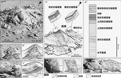 相比地球而言,火星只有两颗小卫星,使得其表面具有低能量的潮汐系统,在这种潮汐环境中只能形成小规模的层理构造。同时,研究中识别的底形和沉积构造具有支持其为流水沉积而非风成沉积的证据。