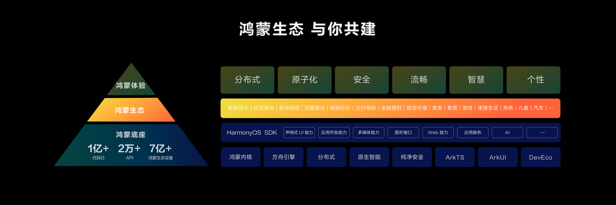 HarmonyOS推行统一生态的理念,现已支持业界主流跨平台框架,让开发者最大限度地复用存量技术资产。在原生智能方面,华为将AI能力融入了丰富系统控件,开发者仅需十几行代码即可完成智慧特性体验的开发,同时提供了HarmonyOS意图框架,将用户需求与应用高效连接,让应用获得更好的商业变现。