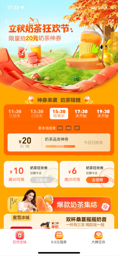 美团App上线立秋奶茶狂欢节活动