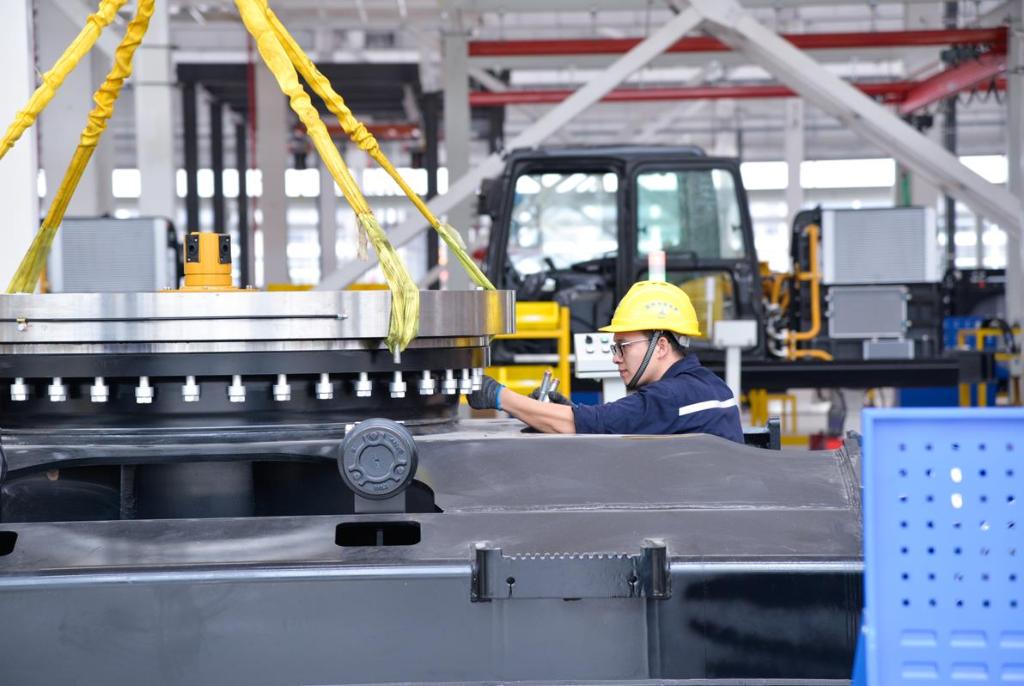 工人在位于重庆两江新区的三一重工西南地区首个智能化“灯塔工厂”项目内作业 新华社记者徐钦 摄