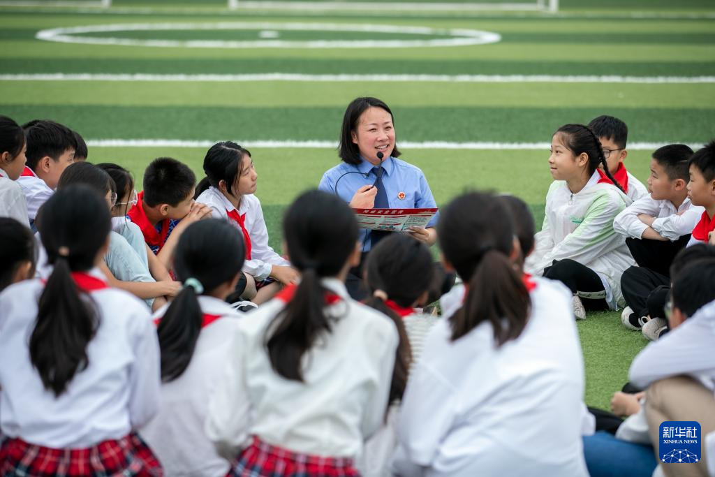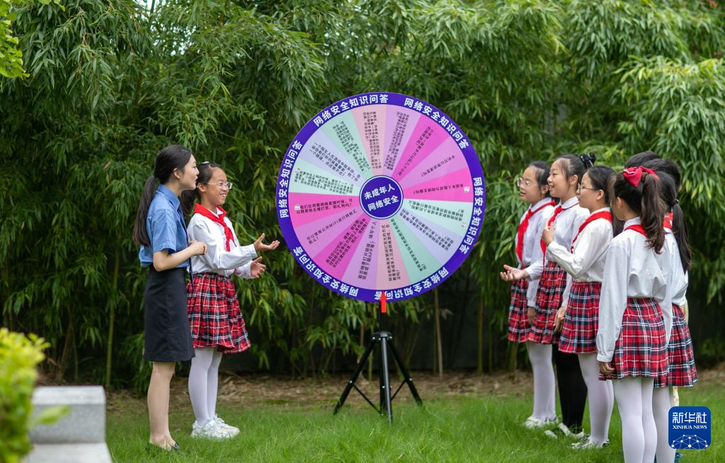 9月14日,江苏省兴化市检察院未成年人法治宣讲团的工作人员走进兴化市文峰小学,通过游戏的方式给学生讲解网络安全知识。