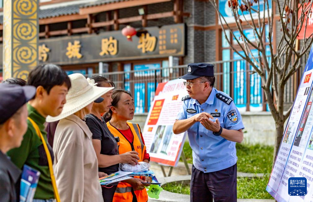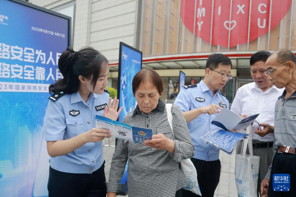 9月14日,在江苏省扬州市邗江区双桥街道的广场上,民警向人们讲解网络安全和防范电信诈骗的知识。