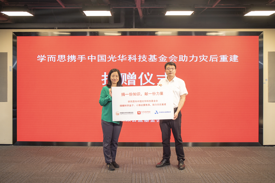 9月26日下午,“学而思携手中国光华科技基金会助力灾后重建”捐赠仪式在北京举行。好未来集团旗下学而思网校科学思维、小猴启蒙事业部携手中国光华科技基金会,捐赠逾万套科学盒子、启蒙教具,通过“捐一份知识、献一份力量”,助力华北等地因暴雨受灾地区重建,履行企业社会责任。