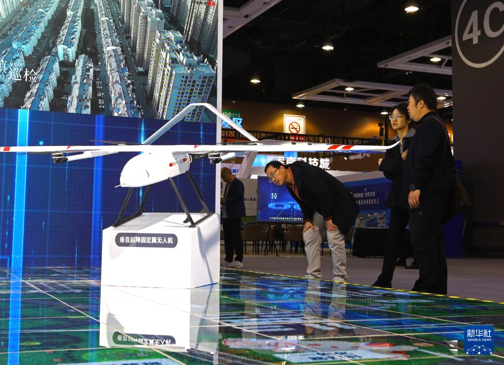 10月18日,参会者在参观垂直起降固定翼无人机。