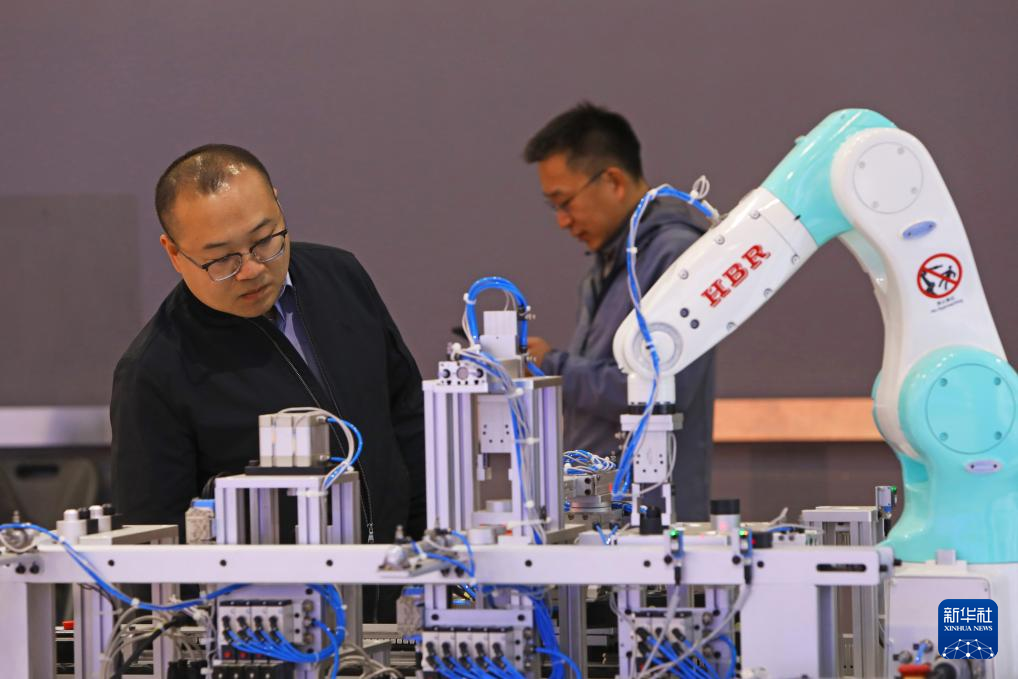 10月18日,参会者在参观5G工业自动化控制系统项目。