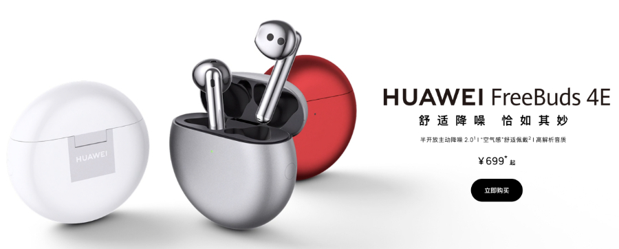 如果不习惯入耳式,那么华为FreeBuds 4E也是500元档的另一款实力担当。华为FreeBuds 4E是一款半入耳式耳机,与其他品牌的半入耳式耳机不同,这款耳机拥有半入耳舒适降噪这一功能,其采用降噪性能更佳的“双麦克风混合降噪技术”,能够有效提升主动降噪性能;并搭载人耳自适应降噪(AEM)技术,让不同用户都可以得到最佳的降噪体验。