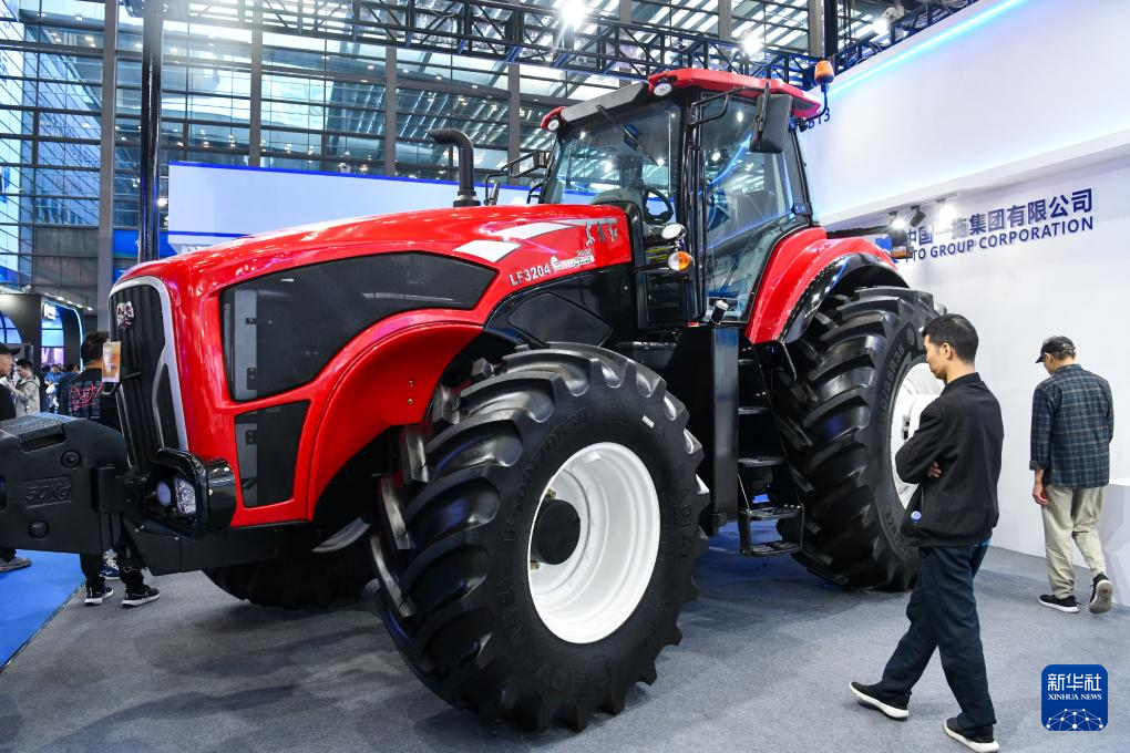 11月15日,观众在第二十五届高交会上了解东方红轮式拖拉机。