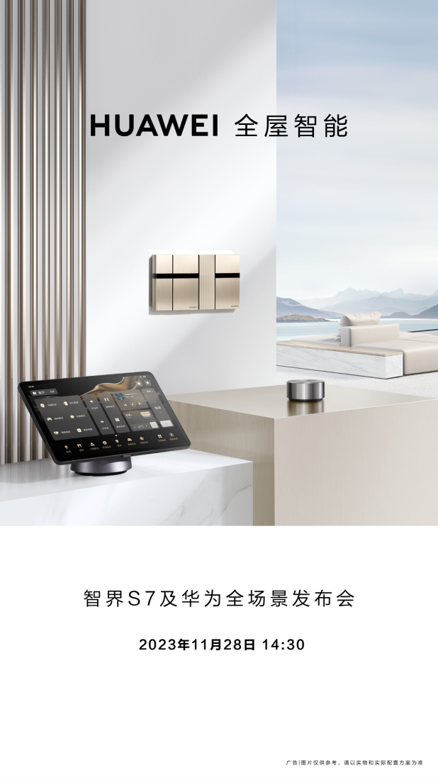 据悉,华为将在11月28日举办智界S7及全场景发布会,届时将有多款新品发布。其中,华为全屋智能5.0也将在本次发布会亮相。据悉,本次发布会华为全屋智能将围绕“智”与“美”带来全新单品和空间解决方案。通过创新交互单品、声光体验、空间拓展以及从未如此放心的独特连接技术,带来有温度的未来空间,展现对未来家的美好向往。