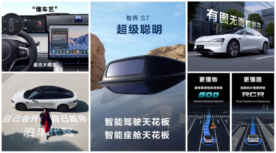 此次发布的鸿蒙智行首款高能大空间智慧轿车——智界S7,汇集华为在车领域的领先科技,采用华为全栈智能汽车解决方案打造的全新平台生产,以全新OneBox造型设计、颠覆性驾控体验以及前瞻的智能科技,重新定义智能电动轿车新体验。