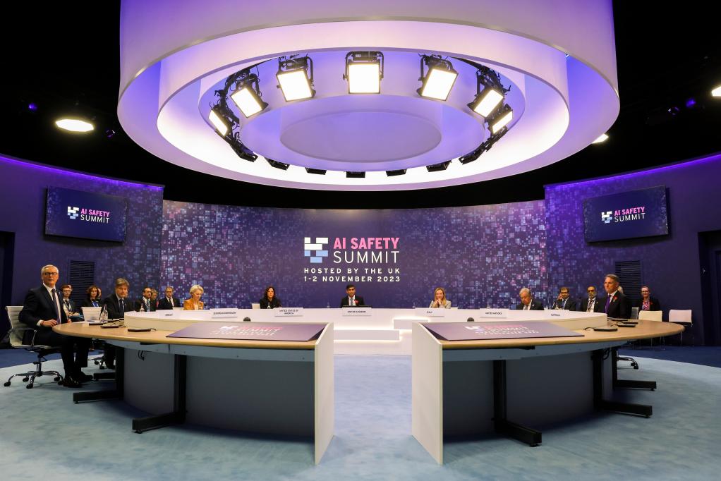 2023年11月2日在英国布莱奇利园拍摄的首届人工智能安全峰会现场。首届人工智能安全峰会于11月1日至2日在英国布莱奇利园举行,峰会发布《布莱奇利宣言》。新华社发(英国首相府供图)
