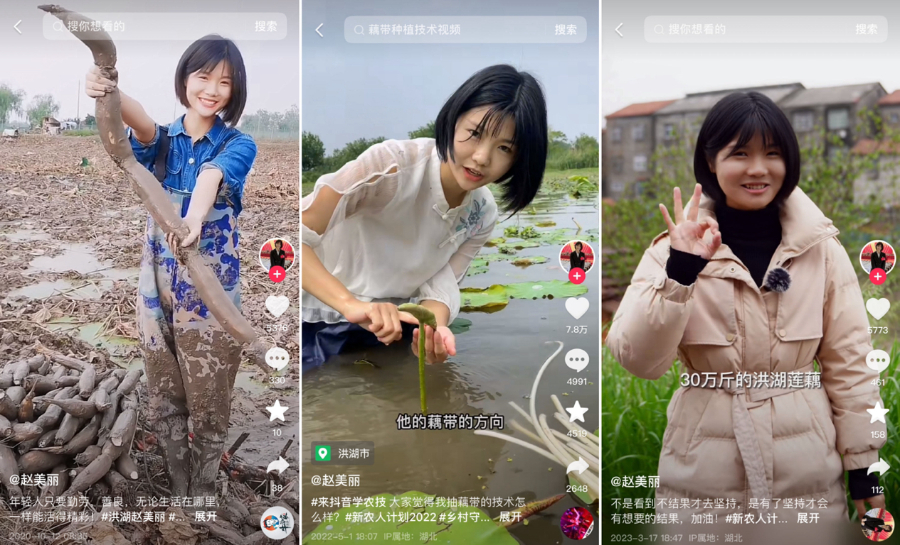 片中的赵美丽原名赵聪,是湖北洪湖人。26岁那年,她从城市辞职回到家乡创业,在抖音电商通过短视频和直播带货,向天南海北的网友们推荐家乡的优质农产,助农事迹还登上了联合国新闻。去年年初,洪湖莲藕滞销,赵美丽在抖音电商发起助农行动,帮助当地近60户藕农售出莲藕50万斤。如今,洪湖的优质农产品通过赵美丽的直播间进入更多人的视野,当地农户的收入也随之提升,一亩地可以多赚几千元。此外,赵美丽还围绕莲藕等初级农产品研发了藕粉、莲子汁等加工品,进一步提升初级农产品的附加值,带动上下游产业持续发展。