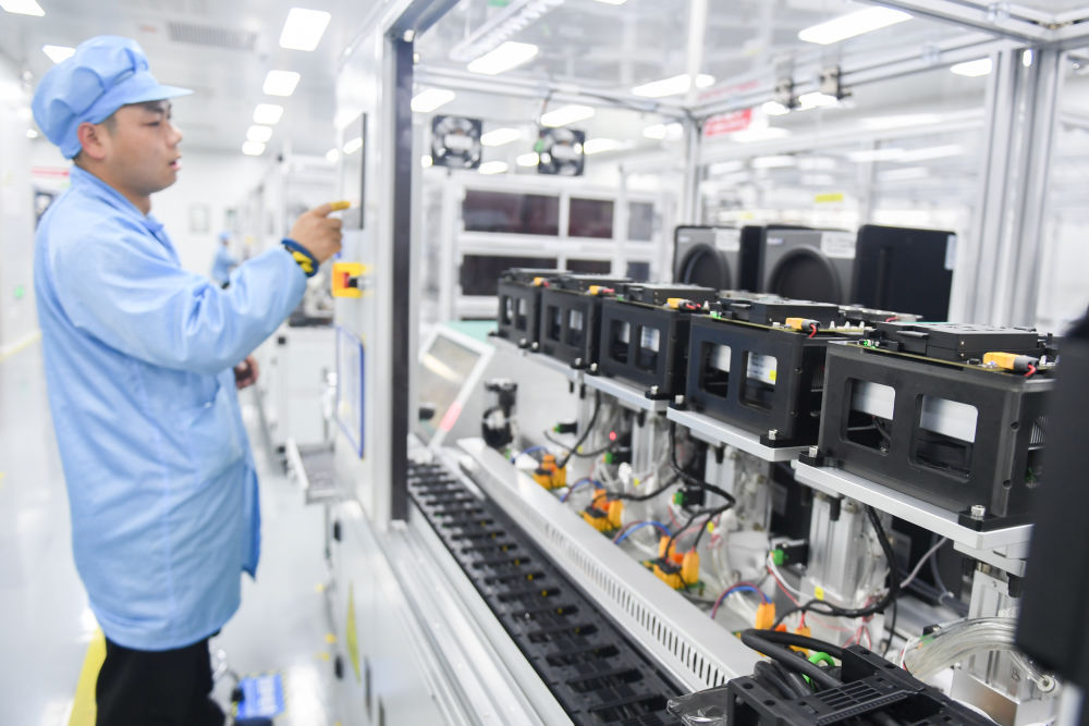 2月28日,在高德红外智感科技民品生产线上,工作人员对红外热成像仪进行程序烧录。新华社记者 杜子璇 摄