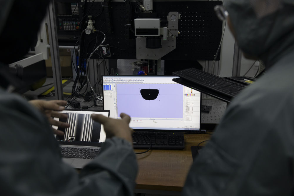 1月19日,在位于西安的中科微精总部车间,工作人员正在用超快激光微加工技术在火柴头上刻字。