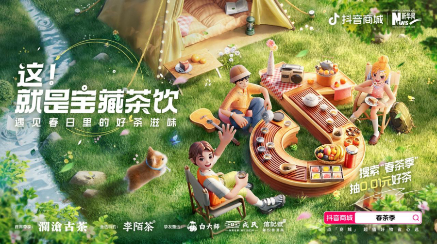 在此趋势下,抖音商城联动新华网开展“这!就是宝藏茶饮”活动,联合优质茶类品牌,邀请头部主播、明星、内容达人共创打造“踏春喝茶”场景,串联起“解读需求—营造场景—促进消费—引领趋势”创新营销组合拳,激活春茶美好想象,为行业和用户带来了具有生命力的“春日派对”。